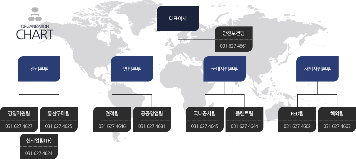 일광E&C㈜는 4개의 본부와 10개의 팀으로 구성되어 있습니다.