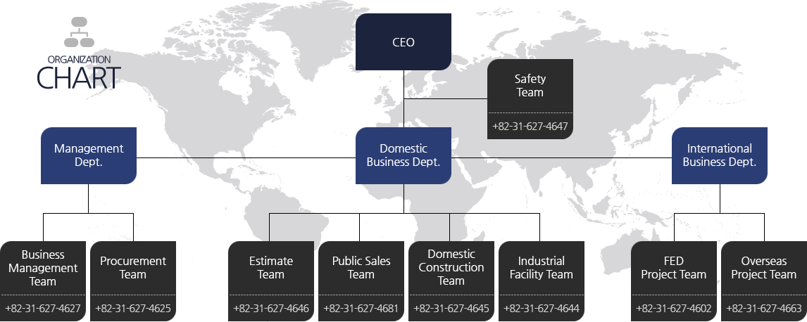 IL KWANG E&C consists of three departments and nine teams.